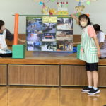 8月24日(水) 垂直避難訓練を行いました。 感染症対策の為、実際にJAへの避難はできませんでしたが、 昭和61年の台風10号の話を聞き、園庭へ避難しました。 真剣に話を聞き、避難することができた子ども達です。